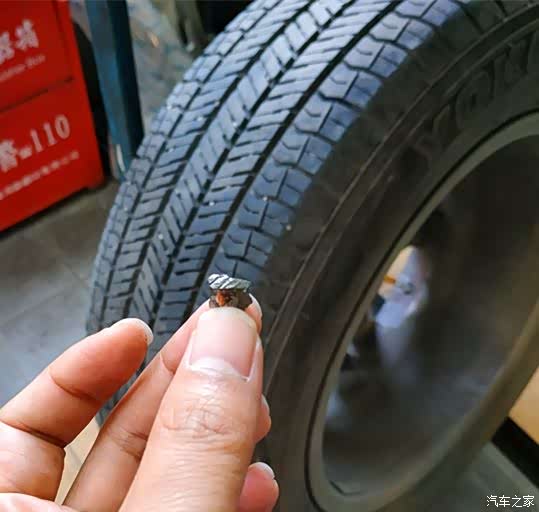 没有想到,还真是发现了一铁片儿扎进了其中一个轮胎,取出来后询问保养师傅,说还好没有被扎得太深,无大碍。