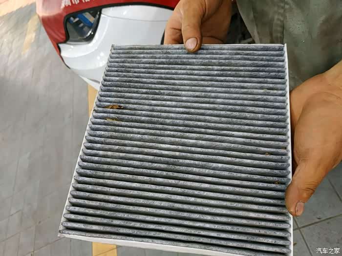 接下来是要检查,空调滤芯了,看到拆出来的空调滤芯已经是很脏了,所以做了更换。