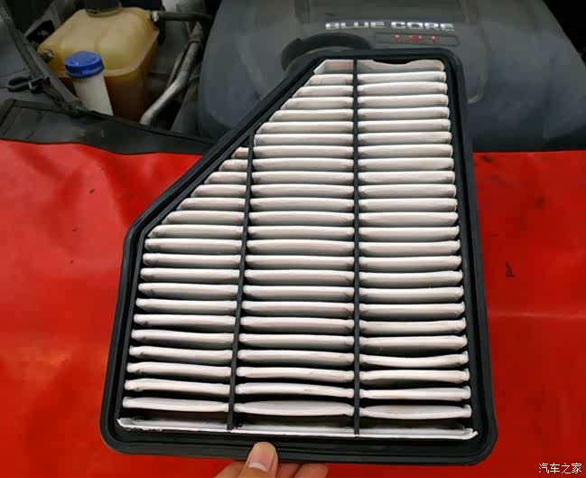 这是拆下来的发动机仓的空气滤芯,检查之后发现并没有很脏,决定先不更换,用高压气枪吹一吹应该可以继续用。