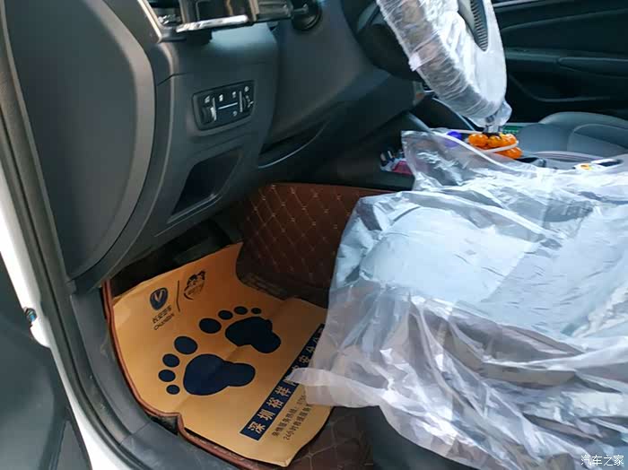 过了一会儿,4S店的接待人员,先给我的CS75主驾位置和方向盘都套了保护套,避免保养作业时会有油污弄脏。这样给人感觉还是挺专业的。
