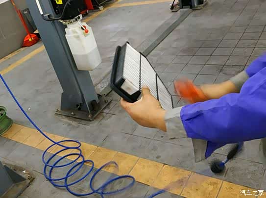 让师傅将空气滤芯吹干净后,决定将它装上车继续使用。