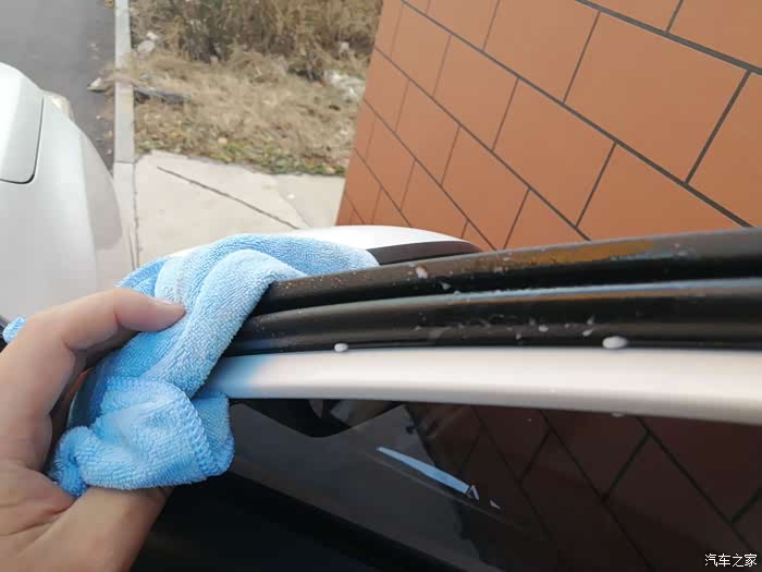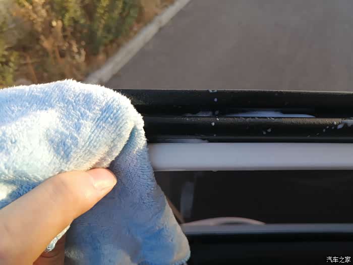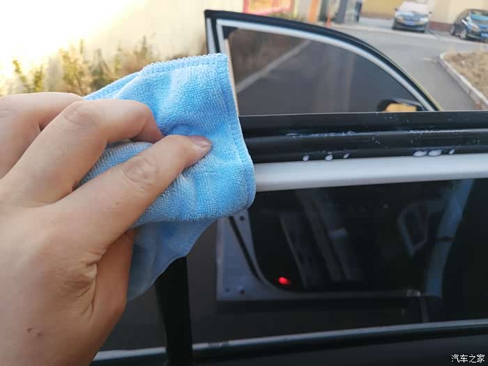 后车门框努力擦拭中!