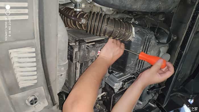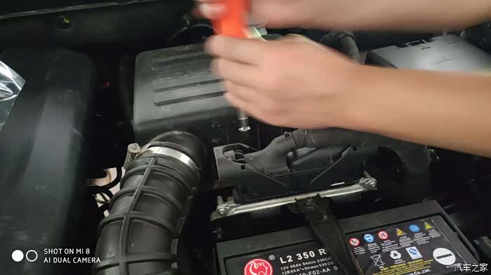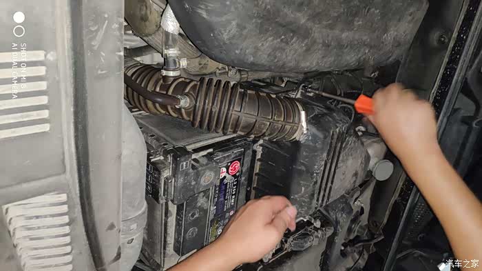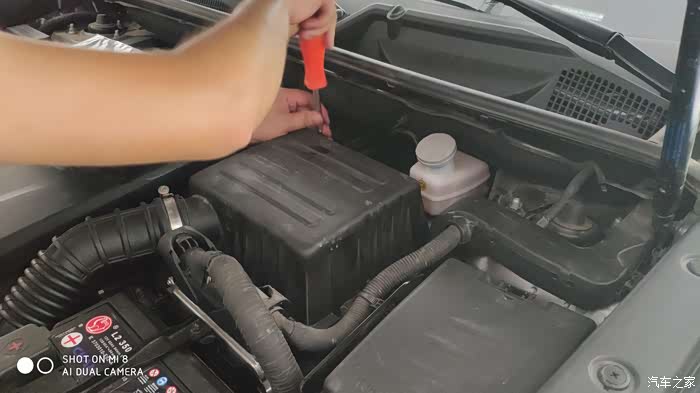 用内六角扳手拧开空气滤芯盒周边的几个螺丝,注意不要把螺丝弄掉。