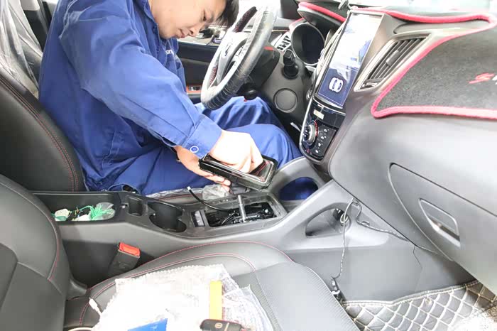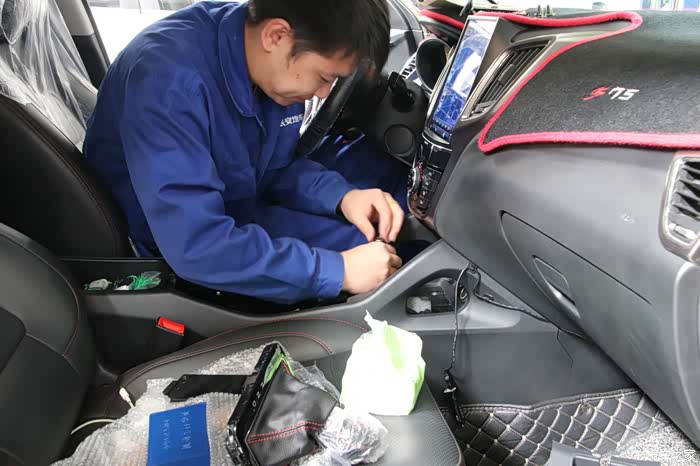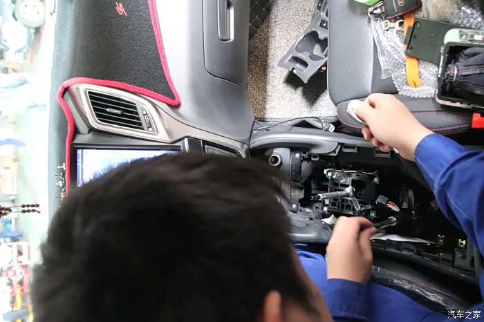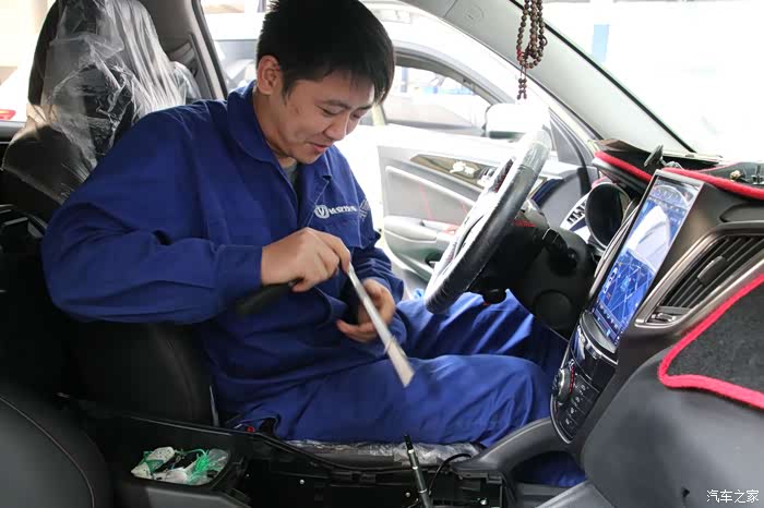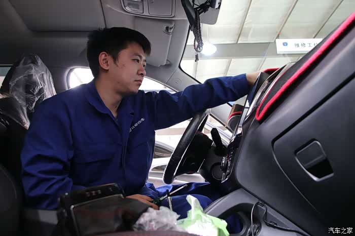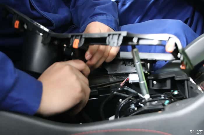 拆下来的螺丝维修技师认真的摆放在仪表台的上部,并且仔细核对螺丝的数量