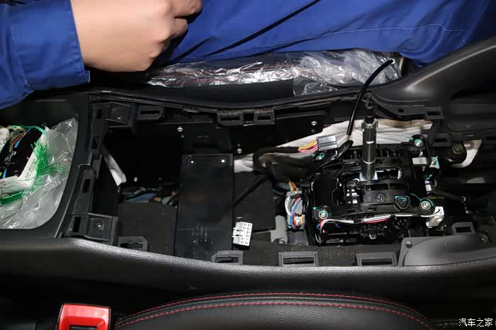 开始取下排挡护罩,维修技师非常小心,为了不损伤排挡护罩,不要硬物撬开,而是用手费劲的用力掰开,真是感谢他了