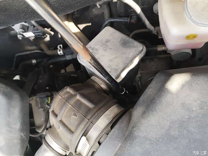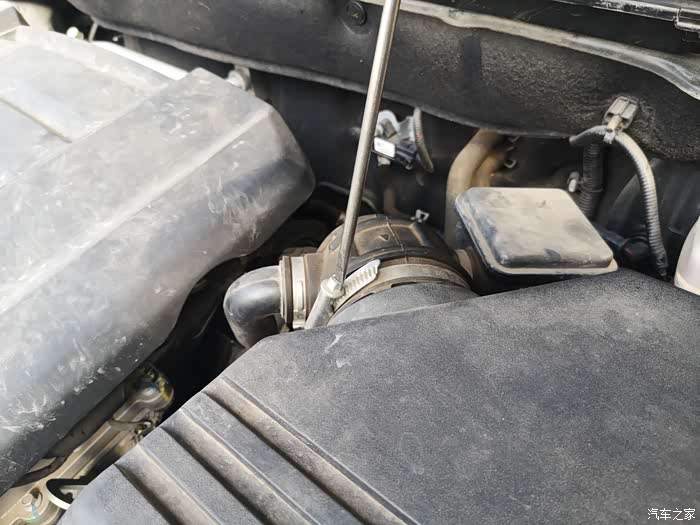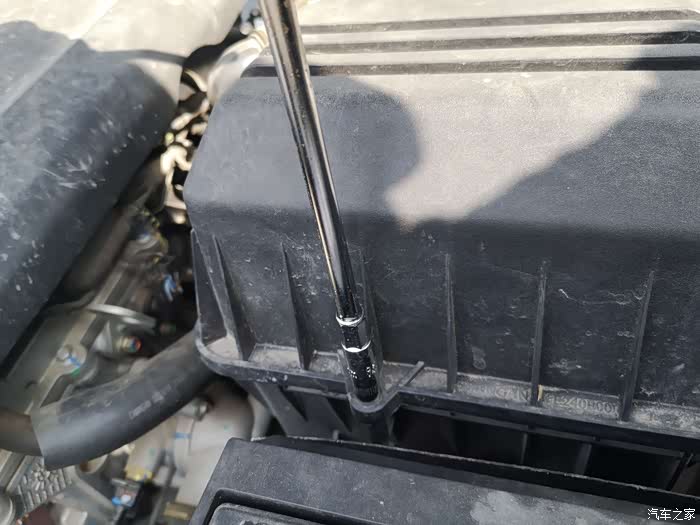 这个方盒子里装的就是空气滤。用7MM套筒将螺丝拆掉。