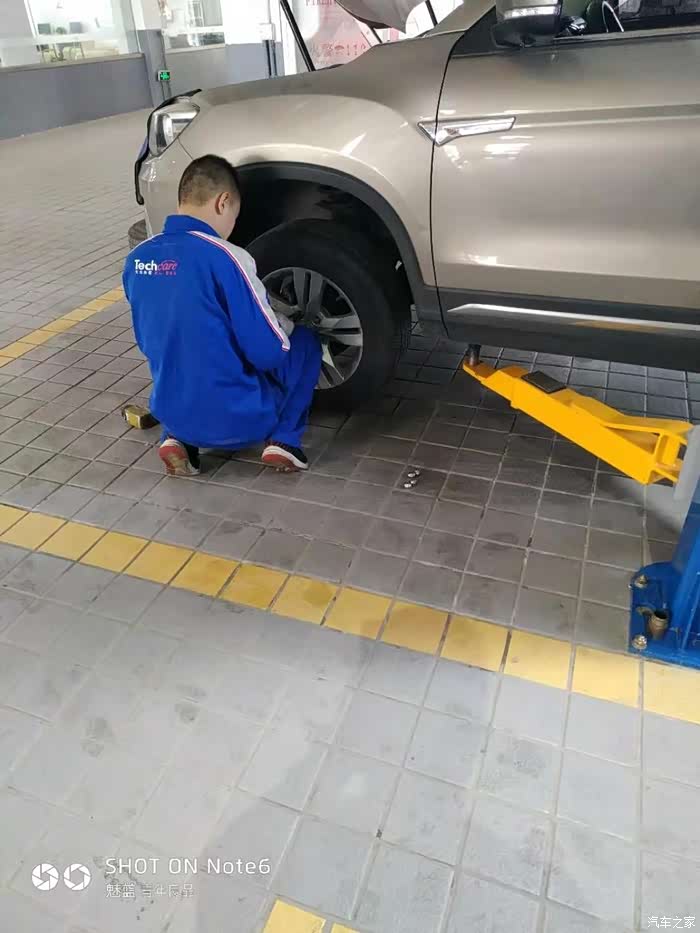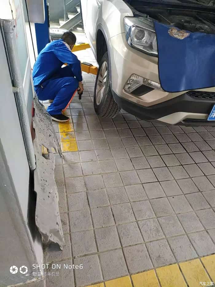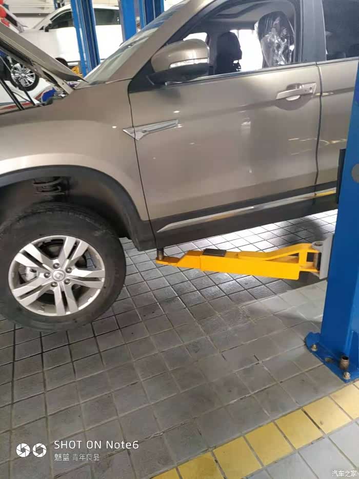 真在我为刹车油少不少纠结的时候车辆离地了,不过和保养时高高的被举起不同只是离地了一拳多高就停止了。