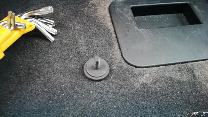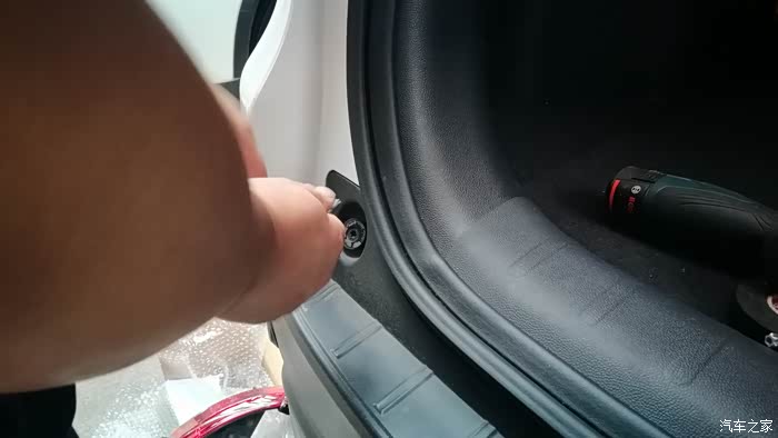 位于后备箱左侧的一个六角螺丝。