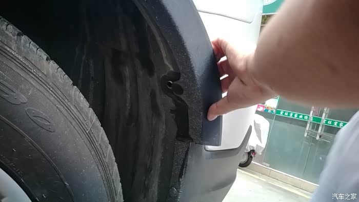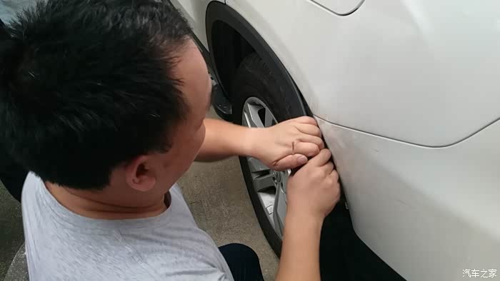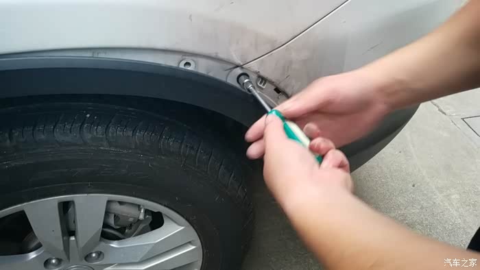 位于左后轮叶子板下的螺丝。