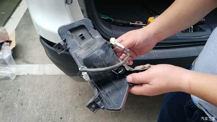 按照原来的方式,把新买的尾灯装上去,插上线,锁上四个螺丝。