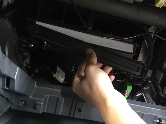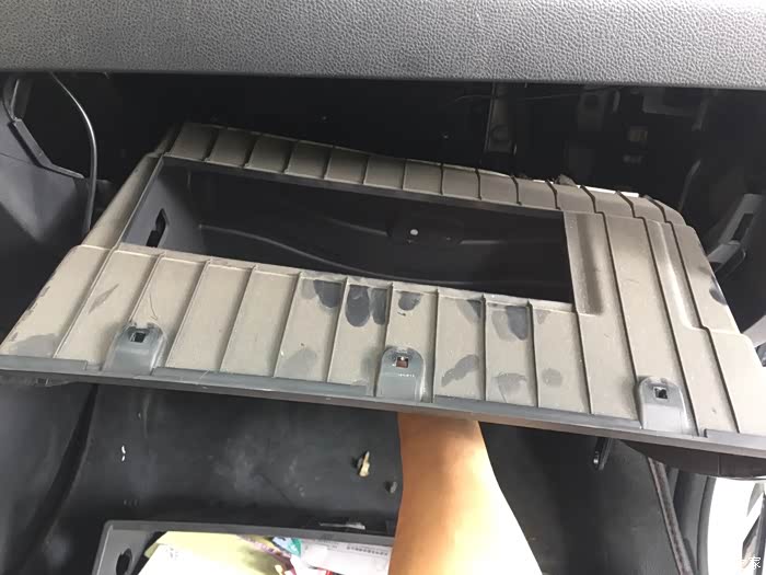 开始更换空调滤芯,空调滤芯在副驾驶的杂物箱里