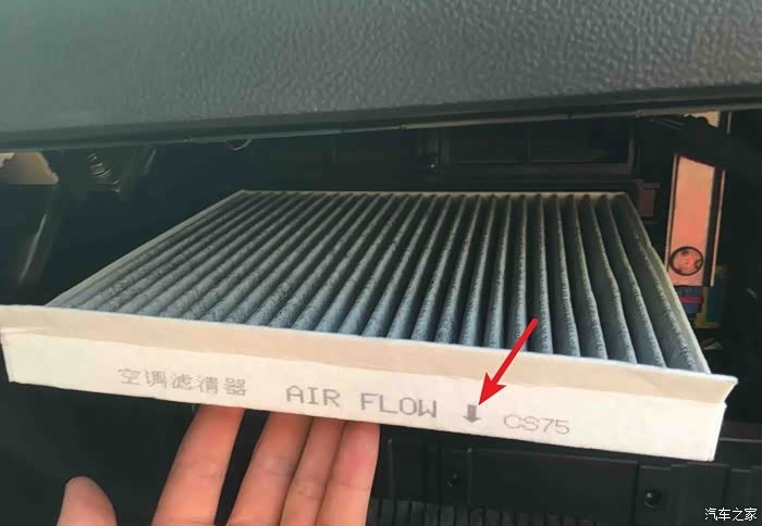 装入新的空调滤芯,注意按气流方向安装。反方向安装的话会导致空调出风不畅。