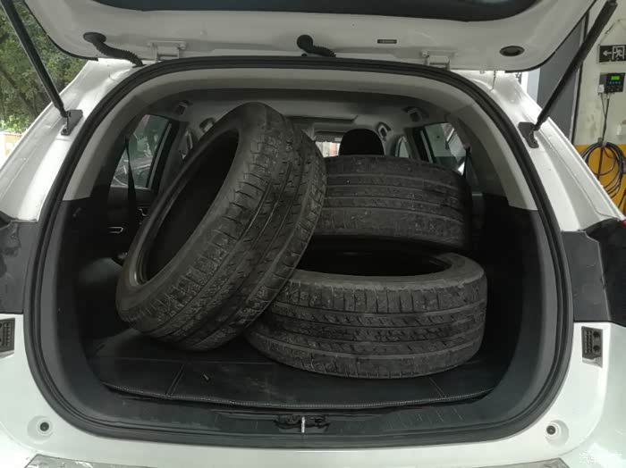更换完了四个轮胎,旧的还是带回家放着!