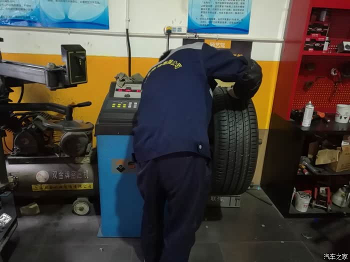所有的轮胎更换完毕后师傅开始打动平衡!