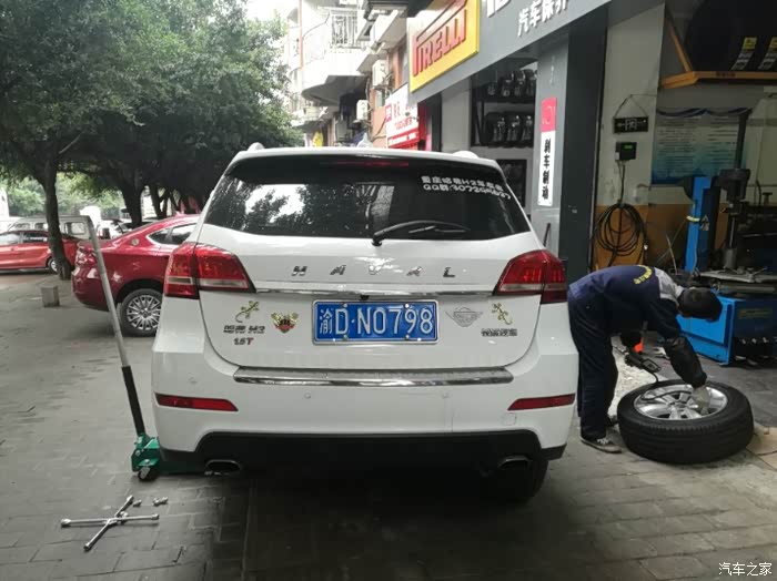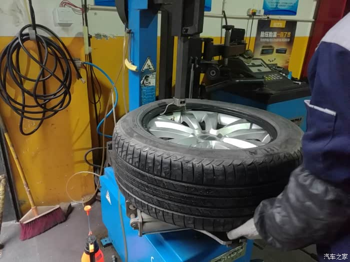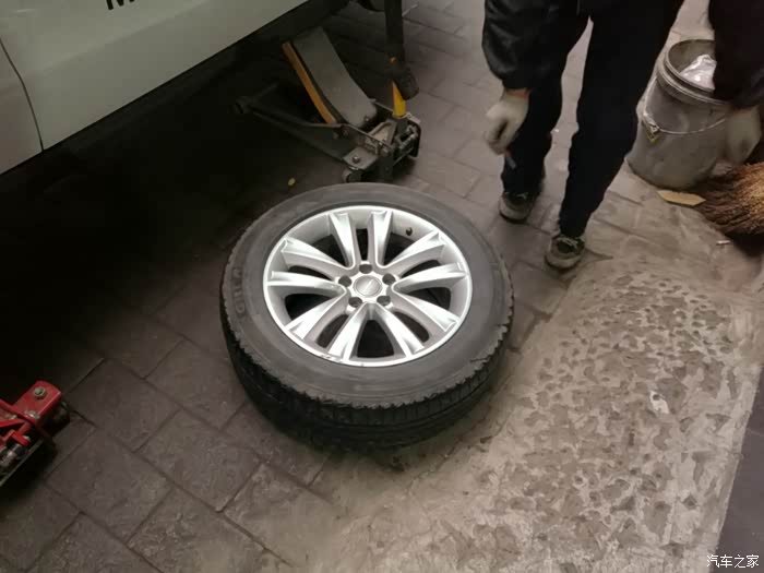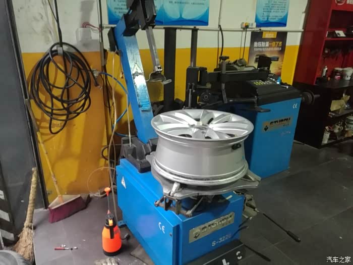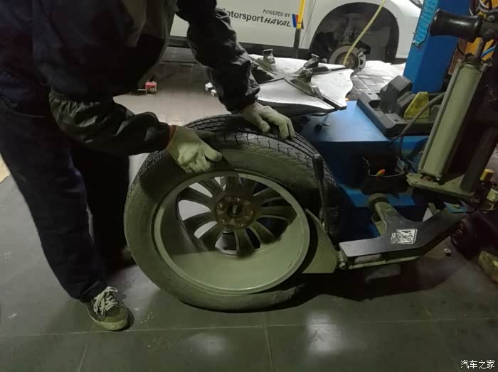 开始将原来的轮胎卸下来,更换中!