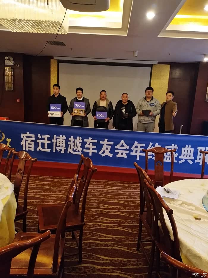 谢谢大家的欣赏。通过这次年会的活动,我又认识了很多车友兄弟,同时也学习了他们的用车经验!~宿迁博越车友会圆满成功最后祝愿车友们在新的一年里,事业处处顺,口味顿顿好,越活越年轻,永远无烦恼!!