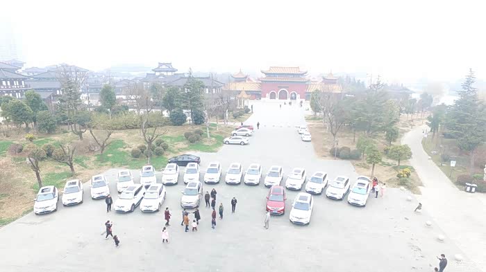 活动地点:江苏省民防训练基地。车友们在准备旗帜。我们排出来的形状后备箱开启全图来一张。