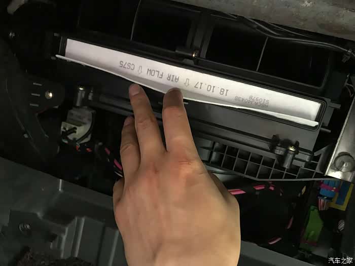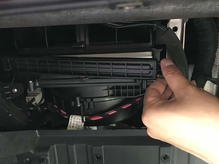 空调滤芯非常隐蔽,有个塑料卡件遮挡