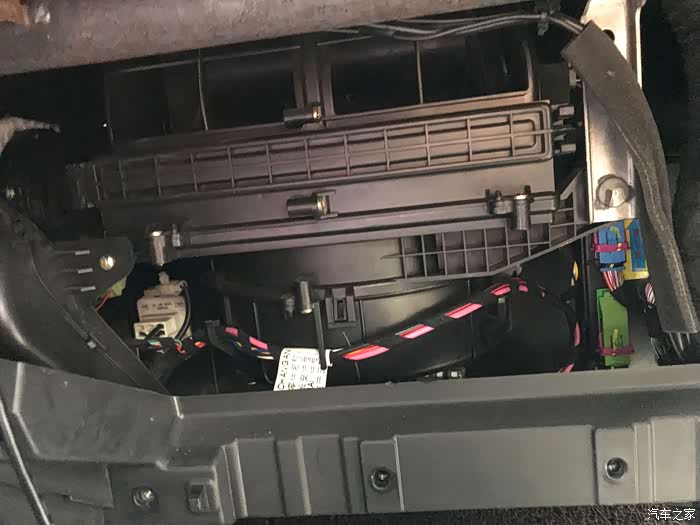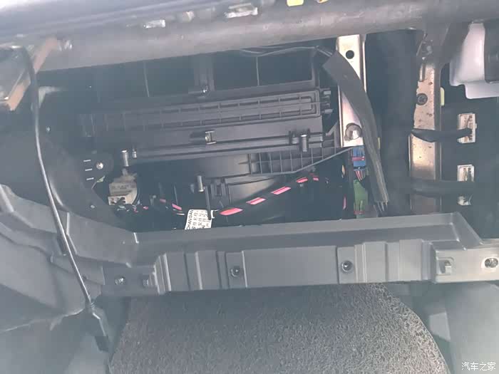 接下来就是拆除空调滤网的课程了,有点繁琐,但是熟能生巧起来也是非常简便的,首先是拆卸下储物箱,拧下内部塑料螺丝卡扣即可