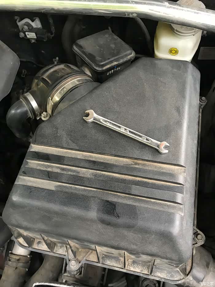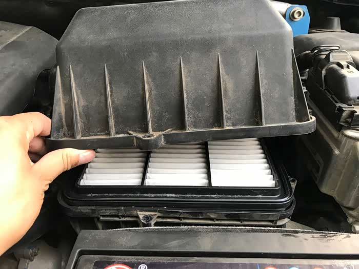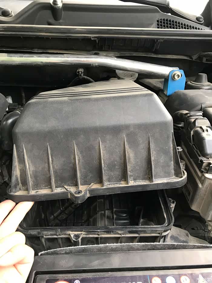 找到空气滤网,每次保养都需要检查一番,确保爱车行使当中能提供新鲜的空气流通