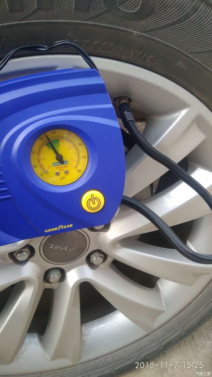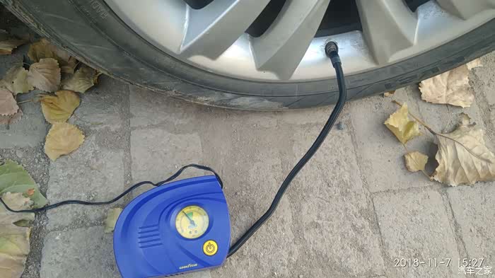 正在补气,随时注意胎压,固特异的充气泵,用的还不错,挺小巧的