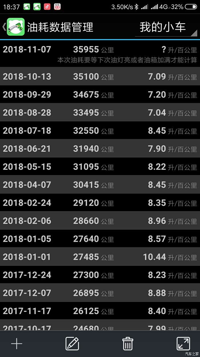最近的油耗,从2月6日28660公里那时感觉油耗高了,开始添加清除积碳和清洗三元催化的燃油宝了,感觉挺有效果的,这里就不说牌子了,省着做广告了,想用的可以私聊我。最近油耗挺满意的。