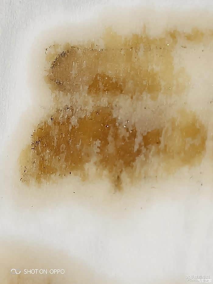 重新用手机相机放大4倍拍的照片,可以看出机油在运动后中的铁屑情况。