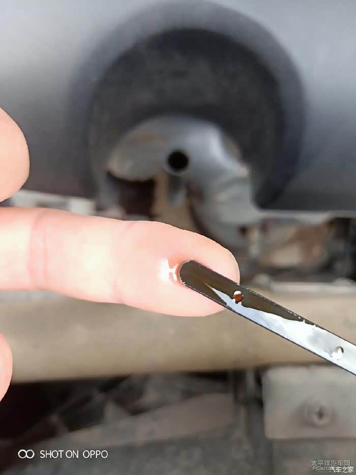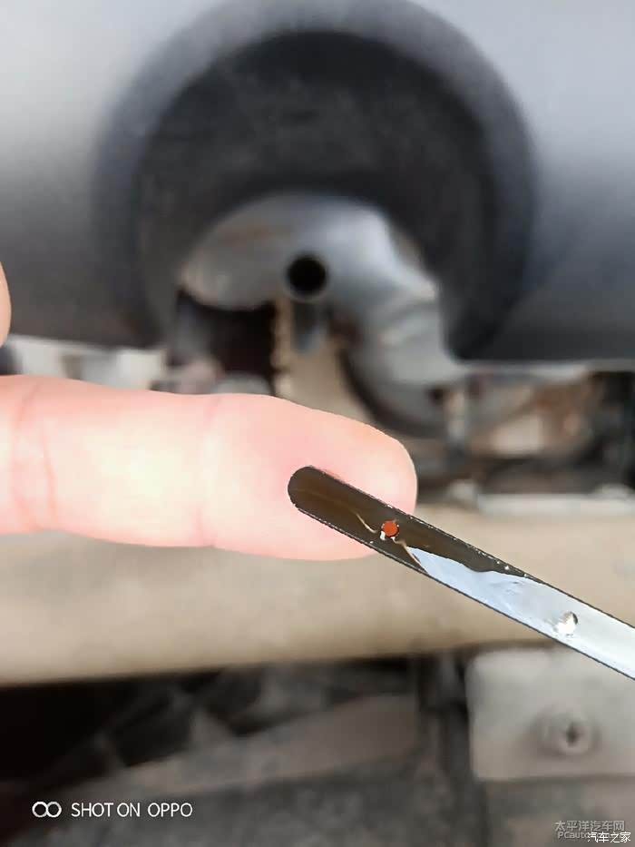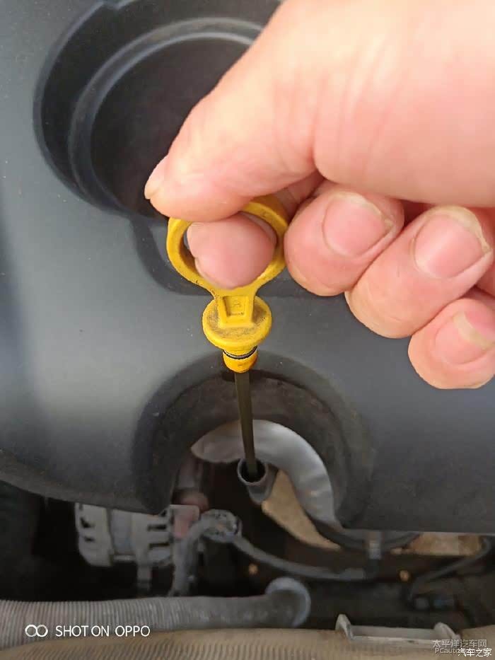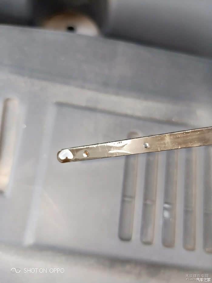 机油量在机油标尺两个小孔之间都属于正常范围之内,而我的发动机机油量在两个小孔之间的10/7。机油量是没问题的。