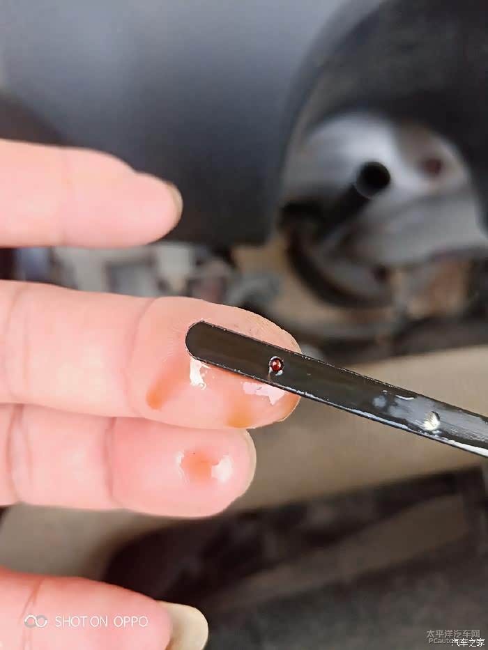 机油量在两个小孔之间的10/7机油颜色从标尺上看不是很黑。