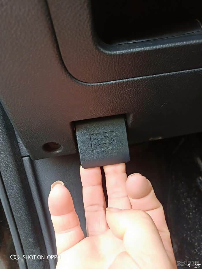 主驾驶左边左膝盖前面的位置处有个发动机引擎盖的,拉手开关上有打开发动机引擎盖的标志