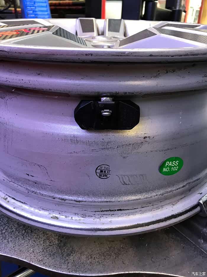 换胎必须把原车的轮毂更换下来,轮毂内安装了原车配备的内置胎压显示器,所以拆装的时候还是需要注意一点的,选择专业的安装店还是非常有必要的,内置胎压检测器部分,平时出行少不了依靠它了