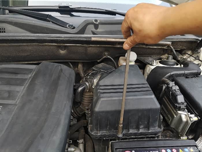 打开小七发动机舱,准备拆卸空气滤芯盒