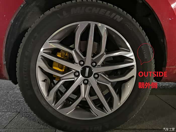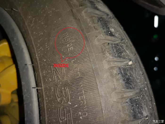 轮胎朝外侧是有一个英文标识的