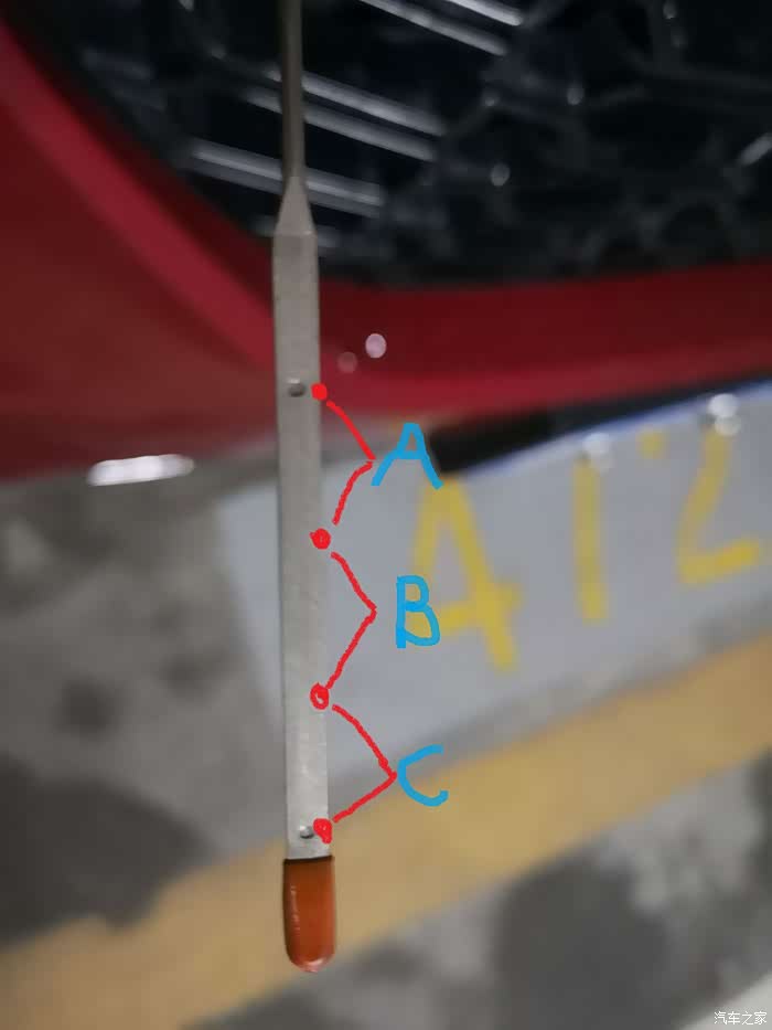 机油卡尺可分三段区域分别为 A.B.C区域