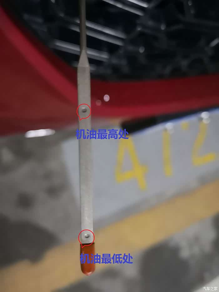 机油卡尺红圈处的点为最高点与最低点