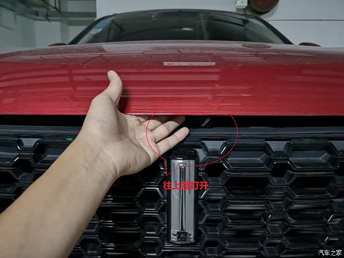 从车头红圈处往上按打开一段距离自动会打开