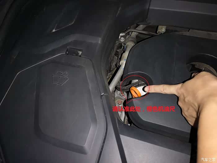 请认准此处的橙色机油卡尺,拉住往上提