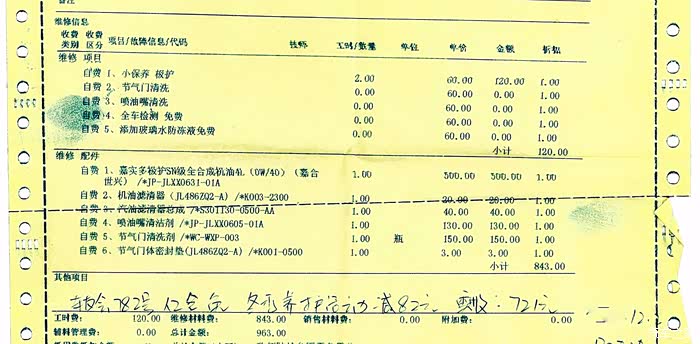 六保清单,极护机油,机滤汽滤,加节气门清洗,花费了721大洋