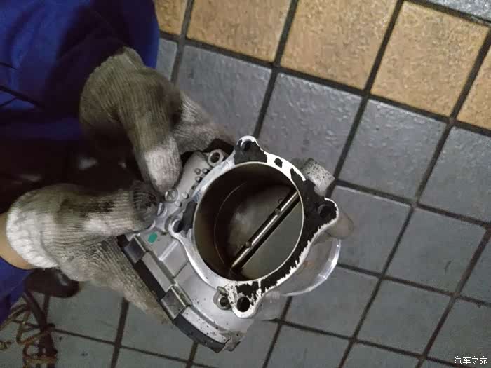 拆下来的节气门,明显有很多油渍,师傅说不算多,但说明清洗还是有必要