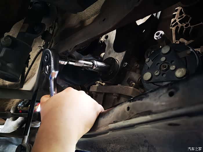 设计不一样,做法也不一样,因为有个发动机脚需要拆除,所以要用千斤顶顶着发动机