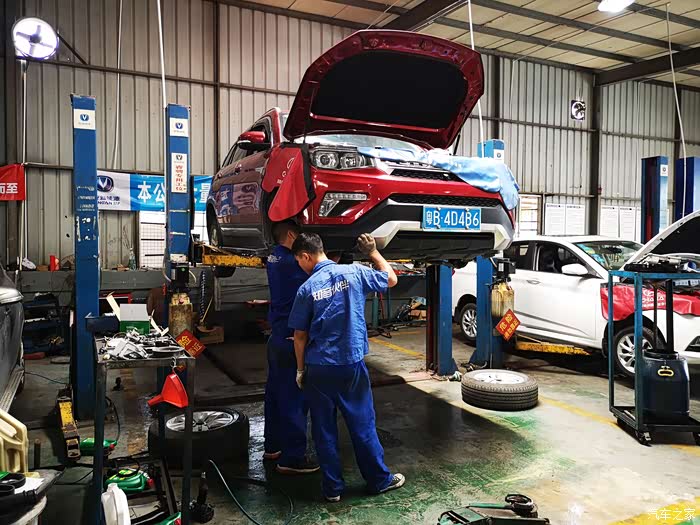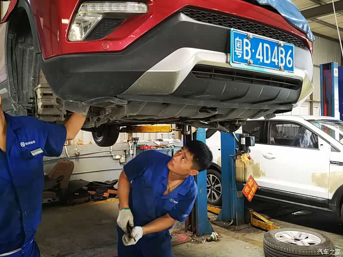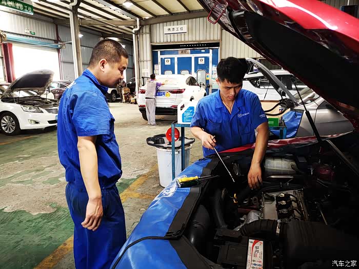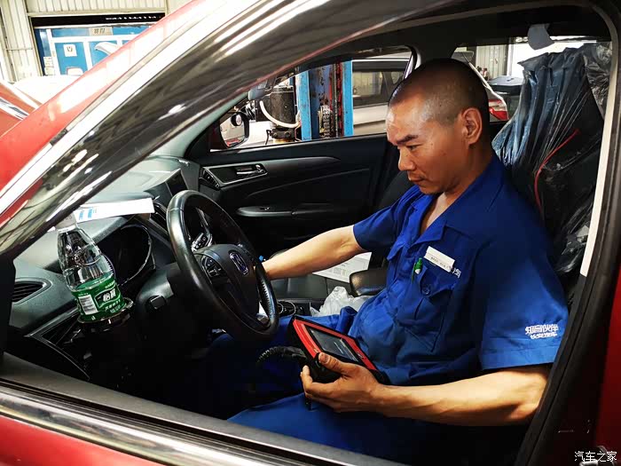 为了省时间,顺便把保养也做了,师傅正在用电脑读取数据,检查数据是否有异常