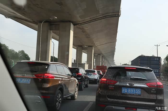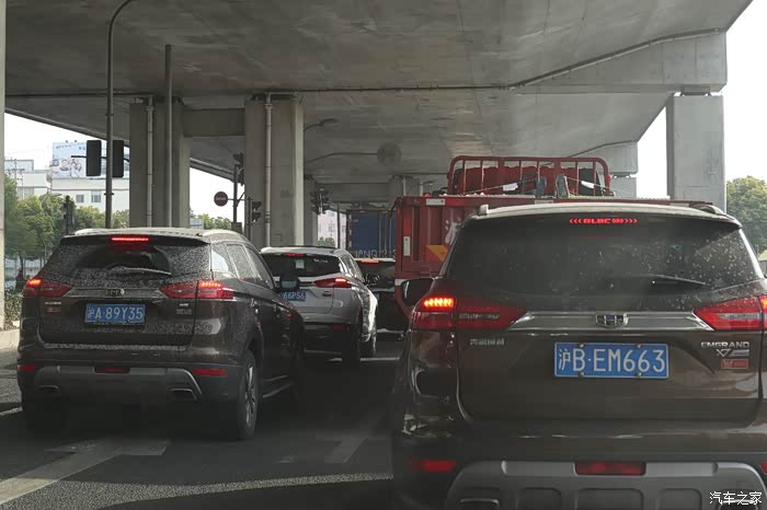 为了模拟正常的路况,我们舍弃了头顶上的高架路而坚持走地面,一个字,堵,手抖兄把车子停在施工的高架桥下,全是泥水,悲催了。