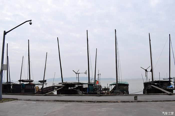 渔船与远处的太湖!