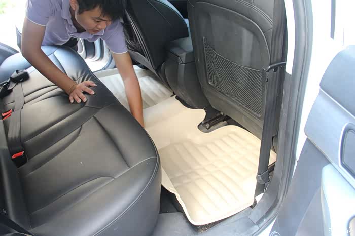 将前排座椅靠前推,方便安放后排脚垫。