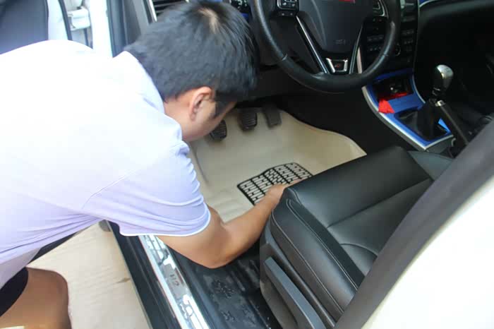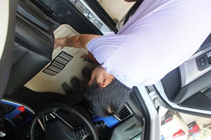 原有车垫丢一旁,先把新脚垫安上再说。