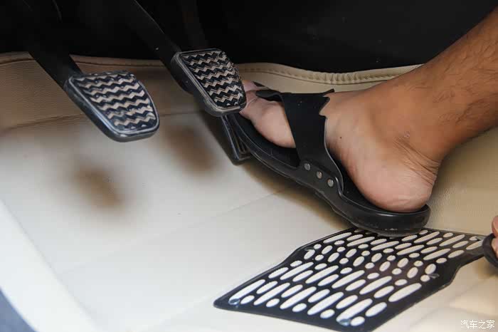 我反复踩踏了几遍,比较顺畅,不会卡住离合、刹车、油门踏板。