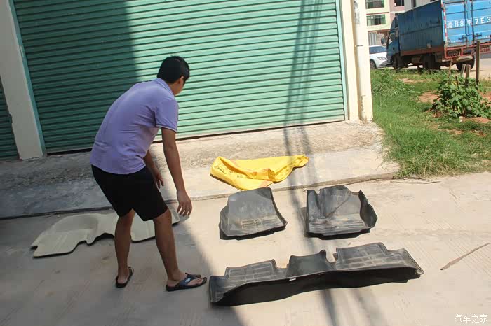 后排脚垫比较长,一个人抽不出,好在帮我拍照的兄弟搭把手,慢慢的抽出。