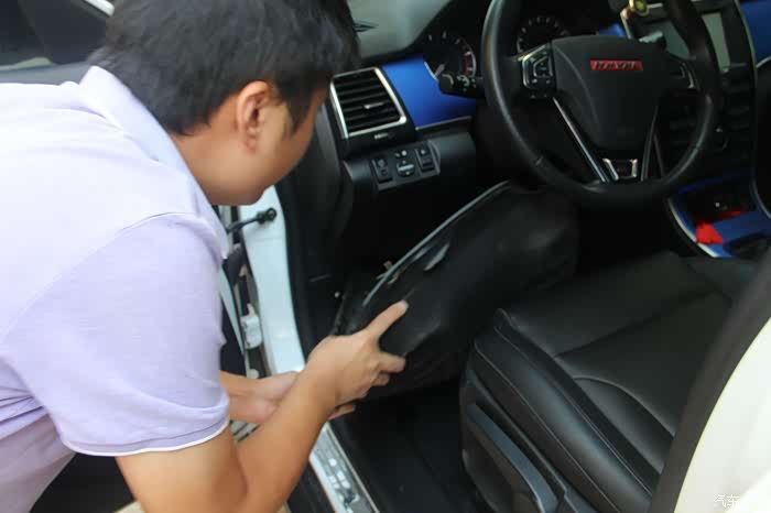 主副驾取出跟换,接下来对后排脚垫抽出。