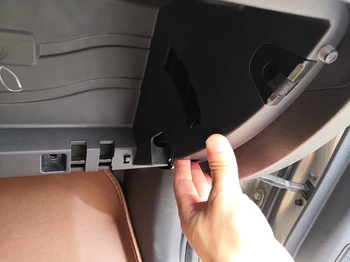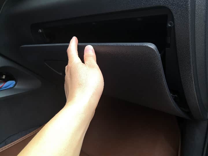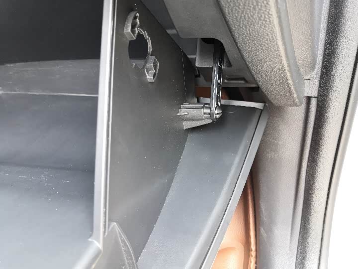 请注意手套箱右边有一个阻尼拉杆