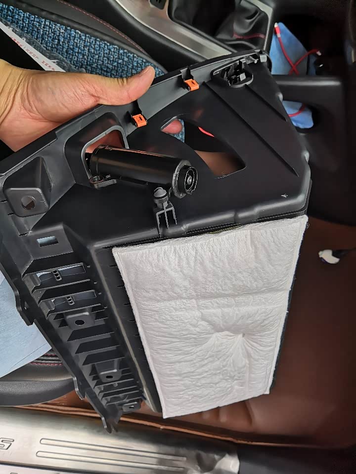 手套箱两边的旋钮对好卡槽一拧就装好了,非常的简单